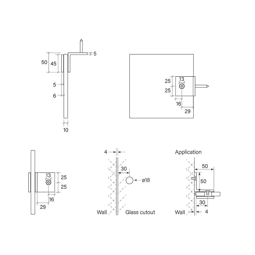 Shower Bracket, Glass-to-wall 90 degree
